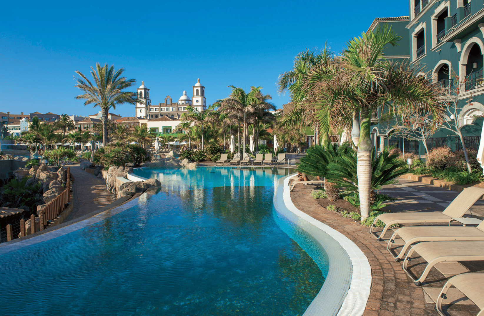 Para que vivas esta aventura sin estrés, hemos seleccionado el Lopesan Villa del Conde Resort & Thalasso, un hotel que no es solo un alojamiento, sino una experiencia en sí misma que imita un pueblo tradicional canario.