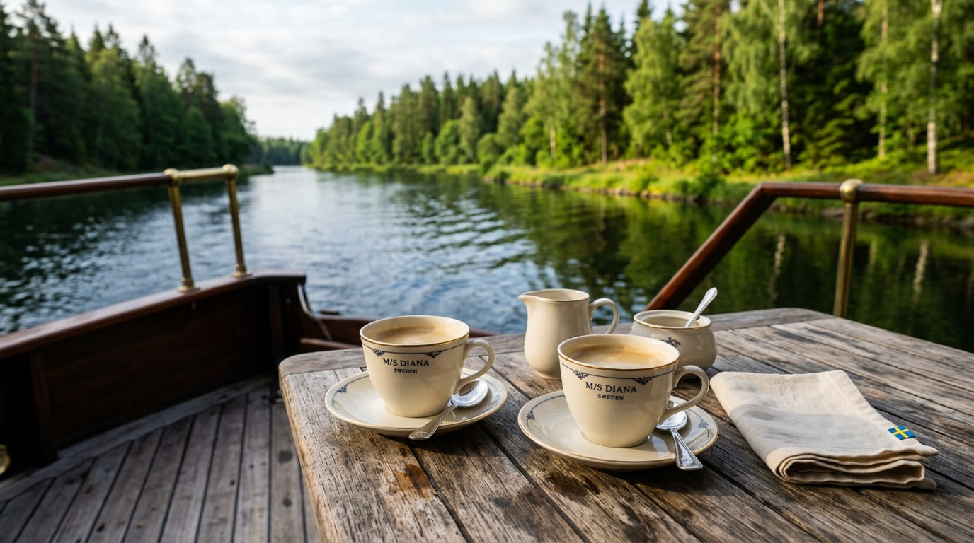Desde Estocolmo la ruta avanza hacia el canal. Aquí el ritmo cambia por completo. El barco se convierte en tu base de operaciones: desayunos con vistas al agua, tardes leyendo en cubierta y paradas en pueblos pequeños que no encontrarías en ninguna guía convencional. Es el tipo de experiencia que después no sabes muy bien cómo explicarle a quien no la vivió.