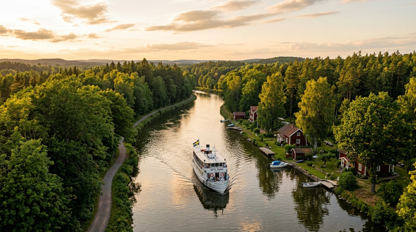 Construido entre 1810 y 1832, el Canal de Göta conecta el Mar Báltico con el Mar del Norte atravesando el centro de Suecia. Con casi 600 kilómetros de longitud y más de 50 esclusas históricas, fue considerado en su época la obra de ingeniería más ambiciosa del país.